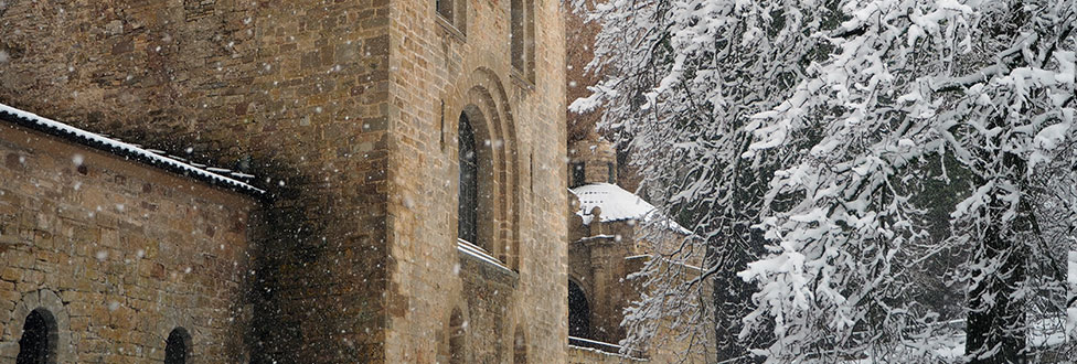 En sus orígenes, en el siglo IX, el monasterio fue una pequeña iglesia prerrománica, que aún subsiste subterránea.