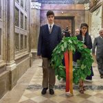 Más de 300 invitados no quisieron faltar a esta cita tan señalada y que volvió a tener como escenario principal el Monasterio Viejo de San Juan de la Peña, enclavado en el Pirineo aragonés. La Eucaristía presidida por el Obispo de Jaca, Julián Ruiz Martorell, y el Abad Mitrado de Leyre, Juan Manuel Apesteguía. Posteriormente, tuvo lugar el homenaje a los Reyes y Nobles de Aragón enterrados en el Monasterio, donde se depositó una corona de laurel en el panteón real.