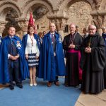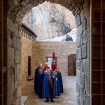 En el claustro del Monasterio Viejo volvió a tener lugar la habitual investidura de los nuevos Caballeros, Damas, Infantes e Infantas de la Real Hermandad de San Juan de la Peña y donde se entonó su himno. Este año fueron 25 las personas que han pasado a formar parte de la Hermandad y que recibieron la capa y la medalla que les confiere el estado de miembros.