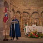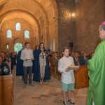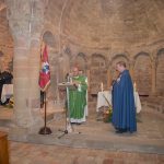 Tras acceder todos al interior, tuvo lugar una solemne Eucaristía, presidida por el obispo de Jaca, D. Julián Ruiz Martorell. La Misa fue cantada por la Capilla de Música Don Hernando de Aragón.