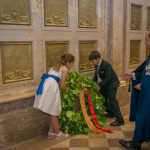 Posteriormente, todos los asistentes, con gran solemnidad, asistieron al insigne homenaje a los Reyes y Nobles del Viejo Reino de Aragón enterrados en el Monasterio Viejo. Nuevamente, como es costumbre, la corona de flores entregada como ofrenda fue portada por dos de los miembros más jóvenes de la Hermandad.