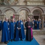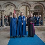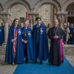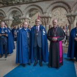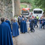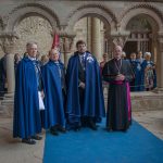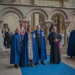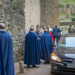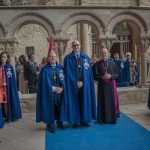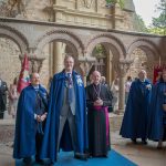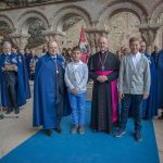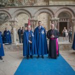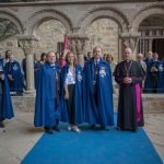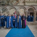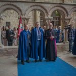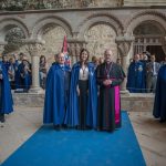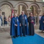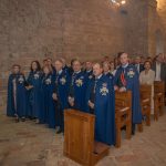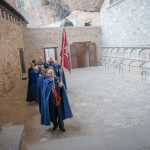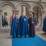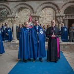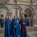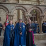 Al concluir dicho homenaje, la celebración se trasladó al magnífico claustro del Monasterio, donde los nuevos miembros de la Hermandad esperaban con una mezcla de emoción e impaciencia a partes iguales su investidura como Caballeros, Damas, Infantes e Infantas. Uno a uno, y tras el juramento en grupo, los 24 nuevos integrantes fueron pasando para recibir la imposición de la medalla y de la capa-hábito.