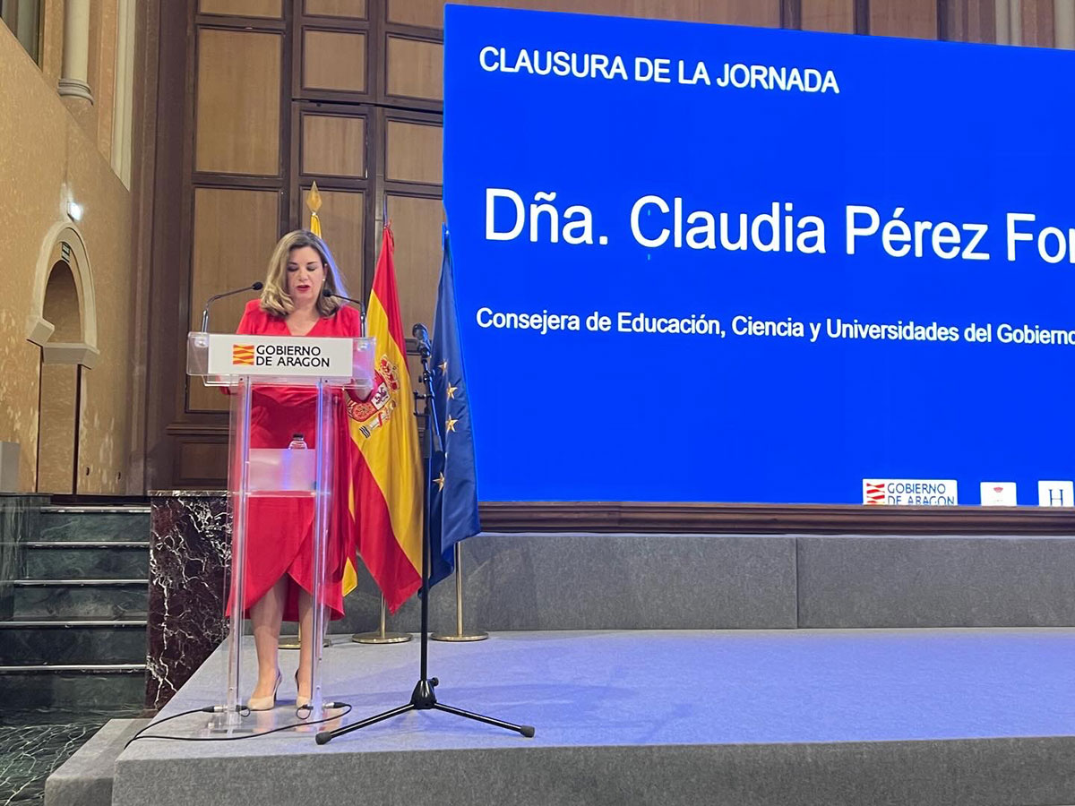 La consejera de Educación, Ciencia y Universidades, Claudia Pérez Forniés, ha clausurado este jueves el acto de entrega de premios de la II edición del Plan de Comunicación Digital de San Juan de la Peña y de la XV del tradicional concurso de dibujo sobre el monasterio. Dos iniciativas en las que han participado más de 200 estudiantes aragoneses, procedentes de 19 centros de Primaria y de Secundaria, que han sido impulsadas por la Real Hermandad de San Juan de la Peña.